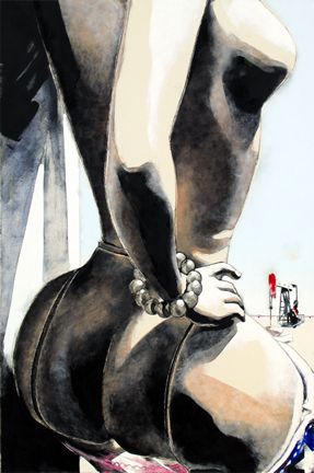 The arms and legs I use in my paintings were invented by Anne Zielinski-Old for the Fashion Model Barbie Collection. Their journey began when I was working with her at the Royal College of Art in 1991 to develop a "virtual catwalk". See Vogue Magazine. Using her illustrative style to shape a 3D virtual mannequin, the ideal shape and expression we came up with to present clothing, were these same limbs she had in 1997 put into a new material called Silkstone for 'Model Barbie'.
